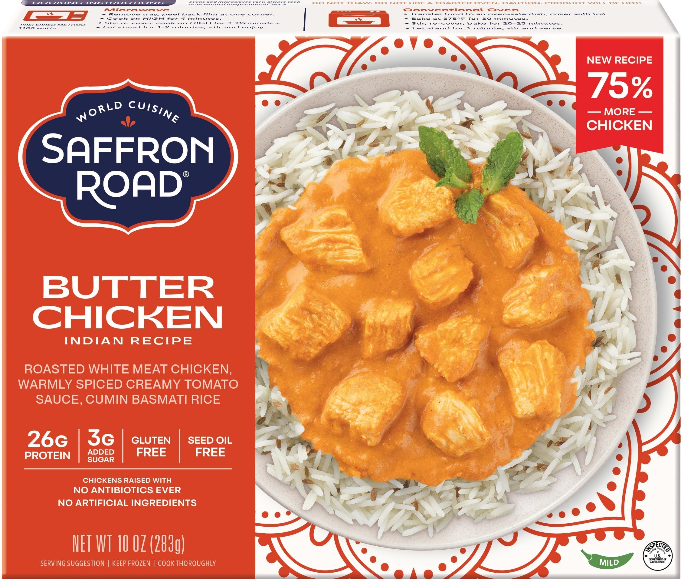- Brown the chicken & pour the entire packet of Saffron Road Coconut Curry Simmer Sauce on the chicken.